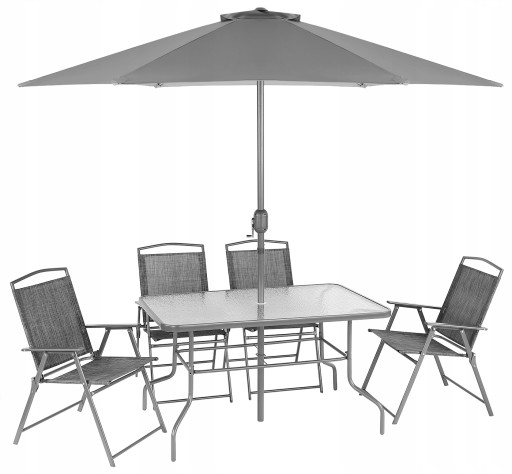 - Kolor: krzesła - odcienie szarości, ramy szary, parasol szary