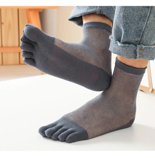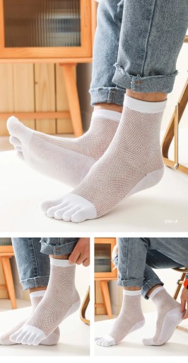 5 Pairs Five Finger Socks Men's Summer Thin Mid-tube Large Mesh Socks Solid Cotton Split Toe Socks Sweat Absorption Breathable Socks for Men Gift