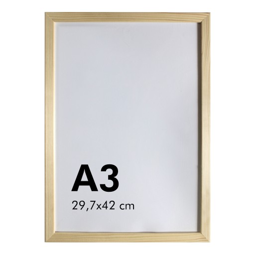 Drewniana ramka dedykowana dla formatu A3, dla zdjęcia/obrazu o wymiarach 29,7x42cm lub 42x29,7 cm (ramkę można zawiesić pionowo lub poziomo)