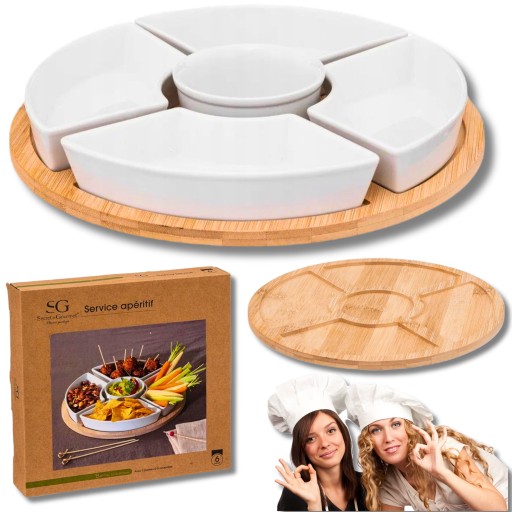 ❤️ZESTAW DO PRZEKĄSEK 5 PORCELANOWYCH MISEK+ BAMBUSOWA PODSTAWKA