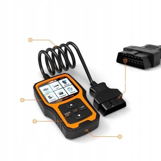 - [Łatwy w użyciu] operacja jest prosta i przejrzysta. Kompaktowa i solidna konstrukcja. Kolorowe 2.4 cal monitor TFT. Skanuje szybciej, a połączenie jest bardziej stabilne niż urządzenia Bluetooth. Nie wymaga baterii i jest zasilany przez port OBD pojazdu.