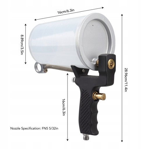 3. Szerokie zastosowanie: Pistolet może być używany nie tylko do natryskiwania żelkotu i żywic, ale także do folii rozdzielających, gipsu natryskowego, żelkotów narzędziowych, podkładów do szlifowania, żelkotów wzmocnionych granitem, klejów i farb, a nawet piaskowania za pomocą największej dyszy.