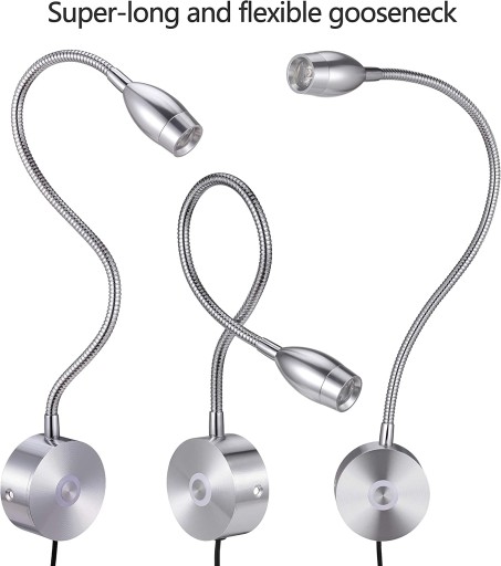 【Elastyczna lampa ścienna typu łabędzia szyja】 Kąt obrotu 360°, który można łatwo przesuwać do żądanej pozycji i kąta. Zapewnij sobie najlepsze efekty świetlne. Lampka do czytania nie oświetla całej sypialni. Lampka do książek nigdy nie będzie przeszkadzać resztie członków rodziny.