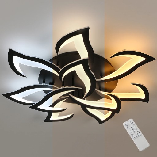 Elegancka lampa sufitowa w kształcie kwiatu, nowoczesny minimalistyczny styl , oświetlenie wewnętrzne w kształcie płatków, oświetlenie sterowane zdalnie, idealnie rozkwitająca na suficie jako żyrandol, proste i eleganckie wbudowane źródło światła LED o mocy 70 W , tworzące ciepłą i jasną atmosferę w Twoim życiu.