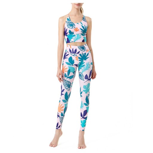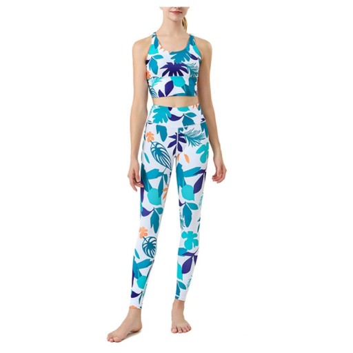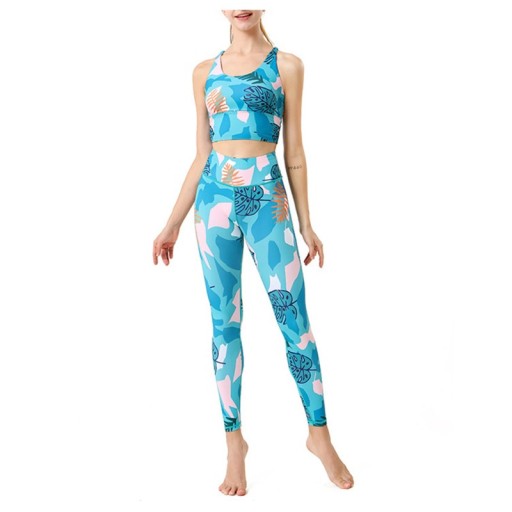 2 szt. Damski strój do jogi Szybkoschnąca kamizelka sportowa Drukowane spodnie do jogi Ubrania fitness Ubrania do jogi