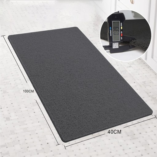 - Antypoślizgowy spód, brak przyssawek, odpowiedni do powierzchni teksturowanych, gruby i rozciągliwy w pozycji stojącej.