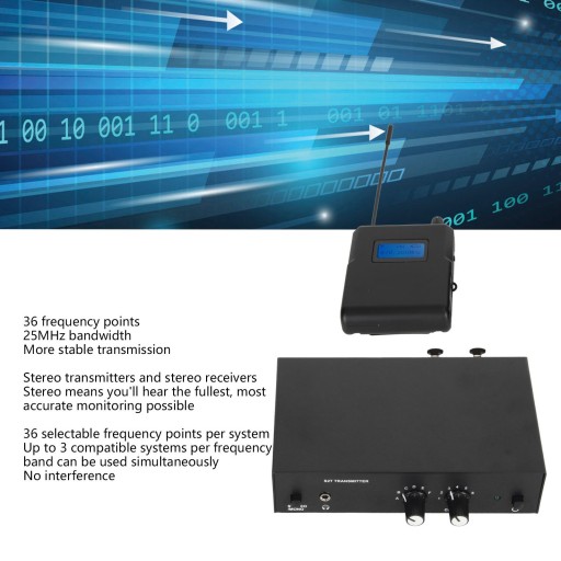 4. NADAJNIK STEREO ODBIORNIK: Nadajnik stereo i odbiornik stereo, stereo oznacza, że słyszysz najpełniejszy i najdokładniejszy dźwięk monitorowania.