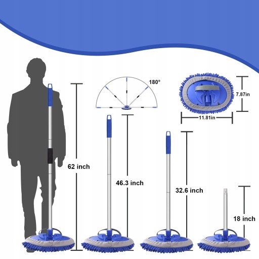 Teleskopowa konstrukcja i regulowana w 180 stopniach głowica mopa sprawiają, że jesteś bardziej elastyczny podczas mycia samochodu i zapewniają, że możesz wykonać kompletne czyszczenie bez żadnych problemów.