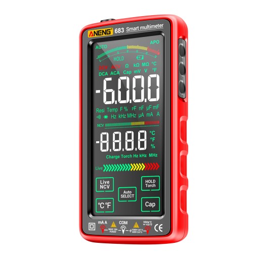 Ekran dotykowy i kolorowy wyświetlacz LCD VA z odwróconym ekranem: ekran dotykowy z inteligentnym czujnikiem, łatwy w obsłudze. Odwrócony kolorowy wyświetlacz VA i maks. 6000 zliczeń. Wyświetlacz, z funkcją zatrzymania danych, wyraźny do odczytu zmierzonej wartości w różnych środowiskach pracy.