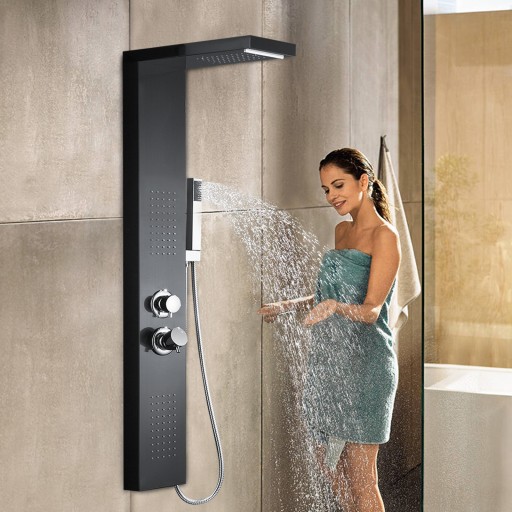 Panel prysznicowy ze stali nierdzewnej z główką prysznicową, Czarny