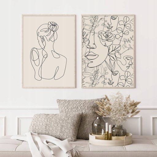 Абстрактная Богемная Линия Женщина Лица Цветами Ми