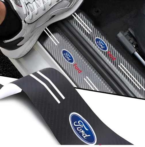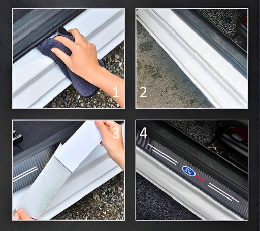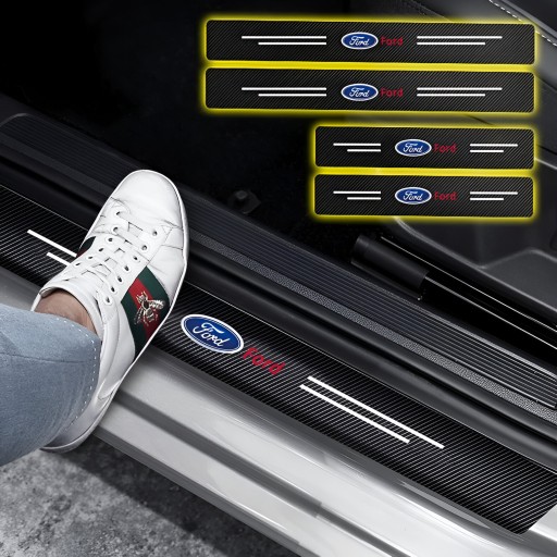 ✅FORD NAKLEJKI NAKŁADKI OCHRONNE FOLIA NA PROGI 4 SZTUKI CARBON CZARNE