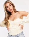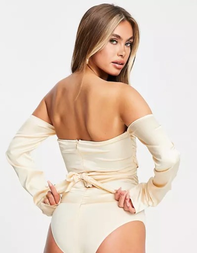 АТЛАСНОЕ БОДИ С РУКАВАМИ RARE LONDON 42 XL