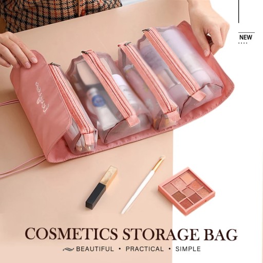 4 szt. w 1 kosmetyczce podróżnej dla kobiet zapinana na suwak siatka oddzielna kosmetyczka damska składana pędzle do makijażu szminka torba do przechowywania