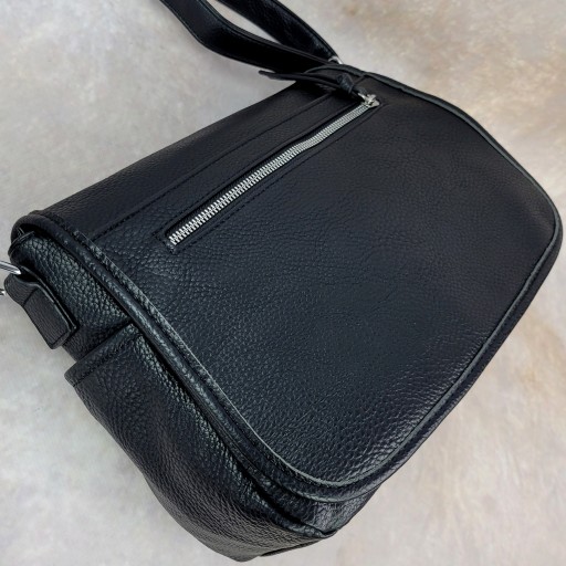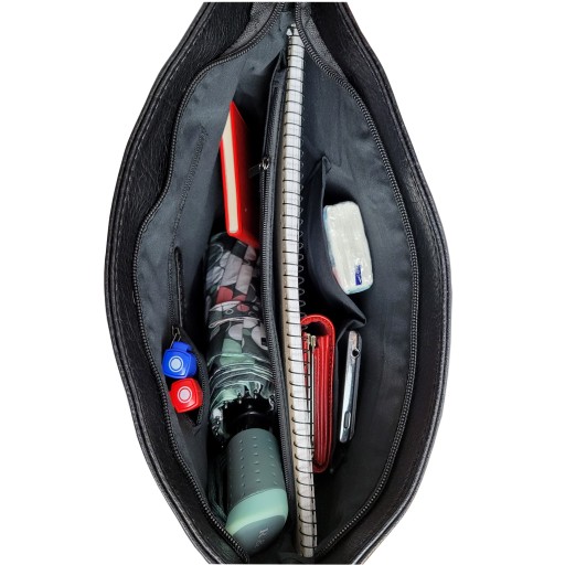 - W środku torby znajduje się kieszeń dzieląca wnętrze na dwie równe części