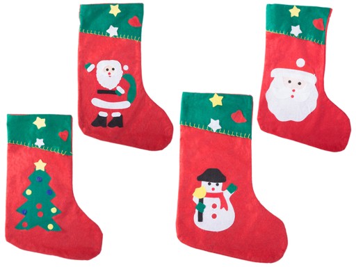 Oryginalna ozdobna skarpeta, nadająca świąteczny klimat każdemu domowi. Można w niej również schować cukierki, smakołyki i inne zabawki, ponieważ jest pojemna. Posiada tasiemkę dzięki której można ją zawiesić przy kominku, na drzwiach czy ścianie.