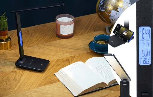 Dodatkowo lampka została wyposażona w mały ekran na którym wyświetlana jest Godzina, Data, Dzień oraz temperatura w pomieszczeniu.