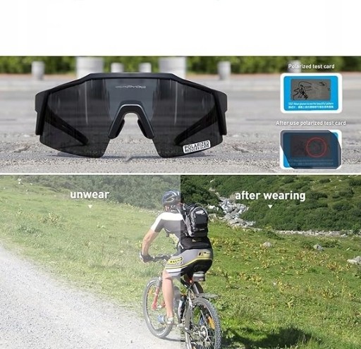 ✅ 4 wymienne soczewki : opakowanie zawiera 3 wymienne soczewki przed promieniowaniem UV, ale tylko czarne soczewki są spolaryzowane. 1. Czarne soczewki polaryzacyjne: eliminują odbite i rozproszone światło. 2. Przezroczyste soczewki HD: kontroler do jazdy nocnej lub w warunkach braku oświetlenia. 3. Żółte soczewki: zastosowanie do jazdy nocą iw ciemności, aby zastosować kontrast i wyrazistość widzenia.
