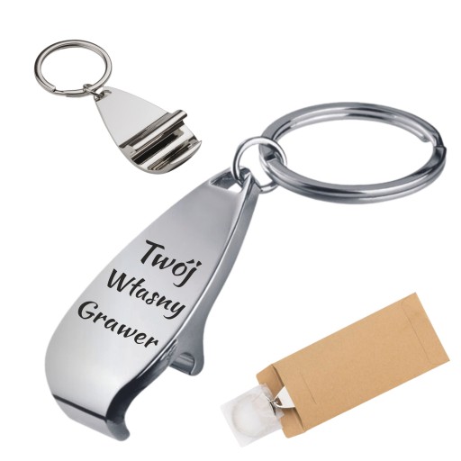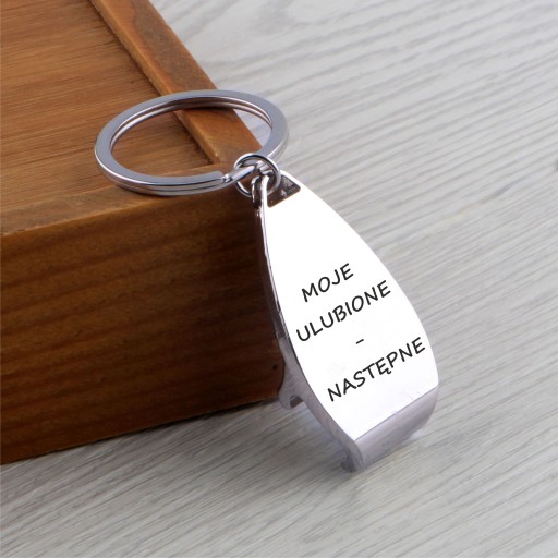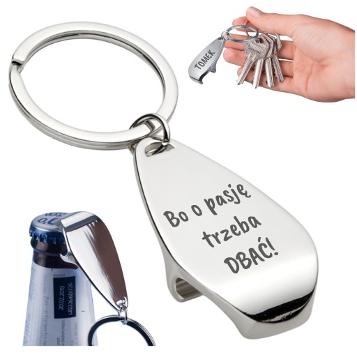 BRELOK OTWIERACZ BUTELEK DO KLUCZY WŁASNYM TRWAŁYM NAPISEM GRAWEREM LOGO