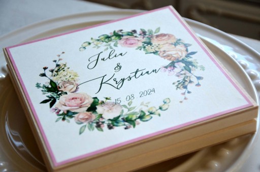 - Nadruk na górze pudełka (Kochanym Rodzicom, Kochanej Mamie, Kochanemu Tacie, Kochanym Dziadkom, Kochanej Babci, Drogiemu Świadkowi, Drogiej Świadkowej)