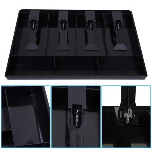 Dzięki 4 przegródkom na banknoty i 3 przegródkom na monety można dobrze zorganizować pieniądze w kasie.