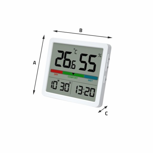 Zapomnij o konieczności posiadania wielu urządzeń w domu - termometr z higrometrem Manty MTO001W nie tylko zapewnia precyzyjne pomiary temperatury i wilgotności, ale także zastępuje tradycyjny zegar. Dzięki wbudowanej funkcji zegara i daty, ten wszechstronny sprzęt nie tylko umożliwia Ci monitorowanie warunków atmosferycznych, ale także upraszcza codzienne życie. Wygodne umiejscowienie na ścianie sprawia, że zawsze będziesz mieć dostęp do informacji o czasie i dacie, oszczędzając miejsce i unikając potrzeby posiadania wielu urządzeń. Manty MTO001W - Twoje all-in-one rozwiązanie dla domu.