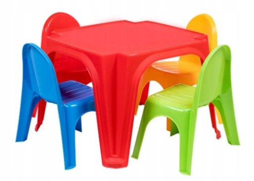Rewelacyjny zestaw, który składa się ze stolika i czterech krzesełek, to doskonałe mebelki zarówno do pokoju dziecięcego, jak i do ogrodu lub działki. Są one lekkie, ale jednocześnie mocne, co ułatwia ich przestawianie. Zestaw został zaprojektowany z myślą o bezpieczeństwie dziecka, posiadając zaokrąglone rogi, a także wykonany z trwałego materiału, który łatwo można zmywać, co ułatwia utrzymanie czystości.