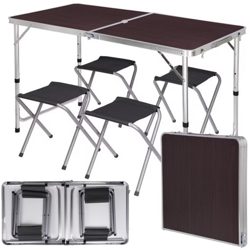 ZESTAW STOLIK STÓŁ TURYSTYCZNY SKŁADANY KEMPINGOWY DUŻY 4 KRZESŁA WALIZKA