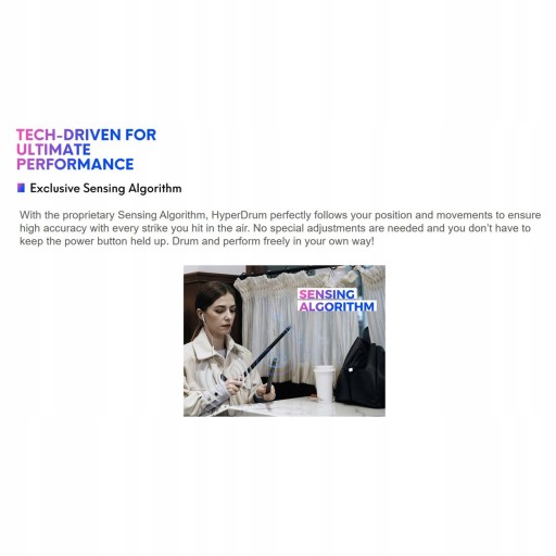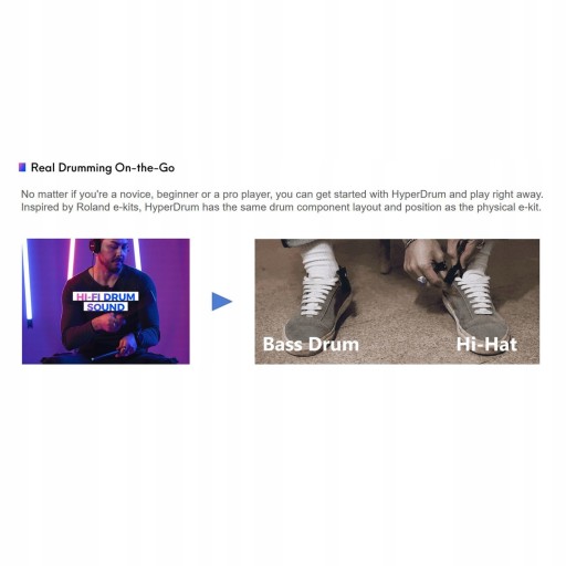 3. Łatwy w użyciu: aplikacja nie jest wymagana, wystarczy upewnić się, że konsola perkusyjna jest podłączona do urządzenia wyjściowego dźwięku (takiego jak głośniki i słuchawki). Urządzenie motion-catch rejestruje dokładny ruch pałeczek perkusyjnych i wytwarza odpowiedni dźwięk.