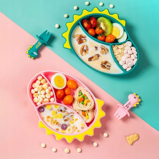 - Talerzyk posiada kształt dinozaura, który z pewnością zachęci dziecko do jedzenia.