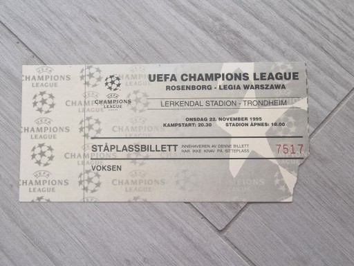 БИЛЕТ РУСЕНБОРГ ТРОНХЕЙМ - ЛЕГИЯ ВАРШАВА 1995 ЛИГА ЧЕМПИОНОВ