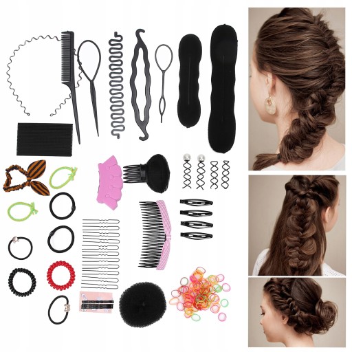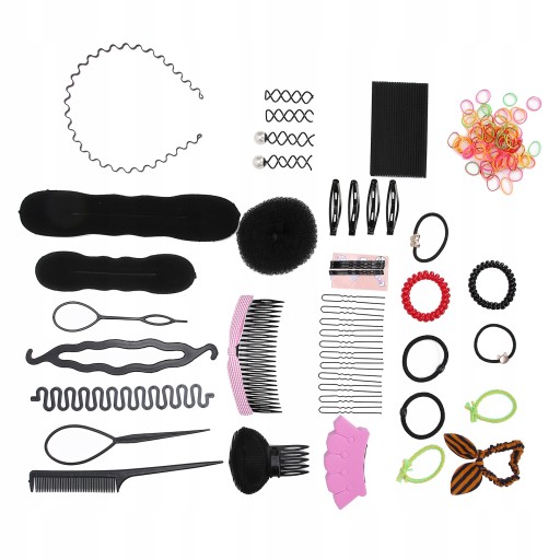 Funkcja:1. Zestaw do stylizacji włosów może sprawić, że twoja fryzura będzie zmienna, kok, gumka do włosów i kok z pończochami, kok baletowy, francuska skręcona fryzura, górna fryzura może być łatwo zakończona.