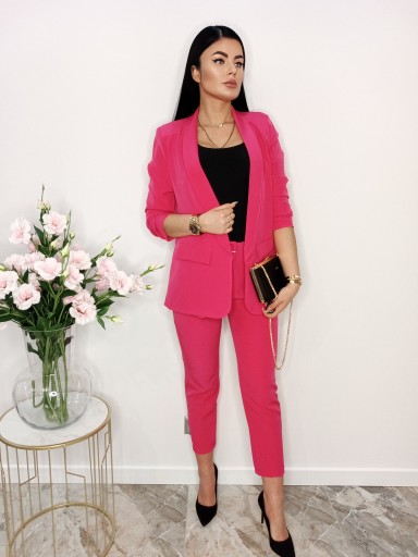 Odkryj moc koloru i wyrazistość stylu dzięki ekskluzywnemu garniturowi damskiemu w intensywnym odcieniu fuksji. Ten niezwykle stylowy zestaw nie tylko przyciąga uwagę swoim wyjątkowym kolorem, ale także zachwyca swoją elegancją i doskonałym dopasowaniem, nadając Ci pewność siebie w każdej sytuacji.