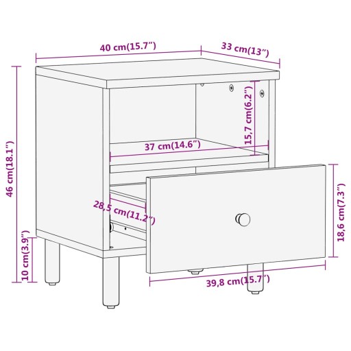 - Dużo miejsca do przechowywania: stolik nocny posiada szufladę i otwartą przegrodę, dzięki czemu możesz uporządkować niezbędne drobiazgi w zasięgu ręki.