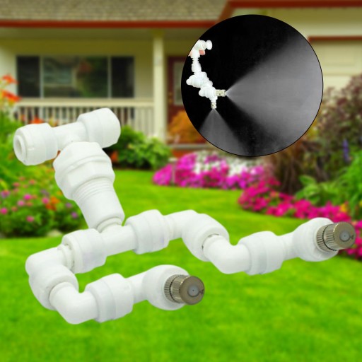 [Elastyczna konstrukcja]: system chłodzenia mgłą, dysza z podwójną głowicą, różne kąty, lepsze chłodzenie basenu, ogrodu lub zwierząt domowych i utrzymywanie ich w chłodzie.