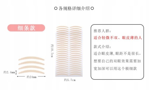 24 pary podwójnych naklejek na powieki * 100 arkuszy (łącznie 2400 naklejek)