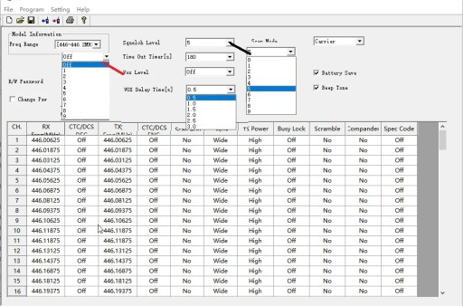 Please contact customer service to get the programming software:Accept repogram Frequency 136-174mhz/400-520mhz /446-446.2mhzThe programming software page Original inputed Frequency