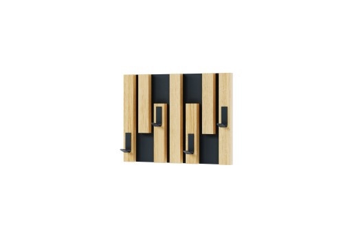 Wieszak na ubrania z dębowych listew jest eleganckie rozwiązanie do przechowywania garderoby. Wieszak wykonany z dębowych listew o szer. 40 mm. i grubości 20 mm. Montowanych na czarnej płycie hdf.