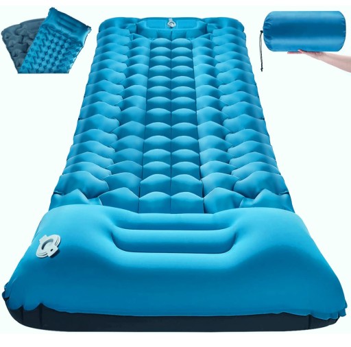 🏝🏝🏝【Trwałe i odporne na przeciekanie materiały】 Mata kempingowa wykonana jest z pogrubionego nylonu z powłoką TPU, wodoodporna, dobra elastyczność i mocne uszczelnienie. Dzięki temu podkładka kempingowa ma dużą odporność na ścieranie i ściskanie, nie jest łatwa do rozdarcia i ciągnięcia. Dzięki podwójnej, szczelnej konstrukcji spustowej, podkładka kempingowa nie przecieka powietrza podczas snu. Po 15 dniach testu nadal pozostaje pełny. Nigdy nie martw się o sen na ziemi, gdy obudzisz się następnego ranka