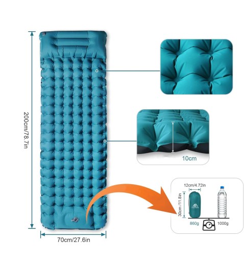 👍👍👍【Bardziej wygodny i większy rozmiar】 W porównaniu z poprzednią nadmuchiwaną matą do spania, podkładka została ulepszona do 200 x 70 x 10 cm. Nasza mata do spania jest wyposażona w wbudowaną poduszkę, która chroni Cię przed bolącymi plecami i zapewnia niezrównany komfort dla najbardziej idealnego snu. Nigdy nie będziesz cierpieć z powodu bólu pleców i szyi z powodu nierówności lub wilgoci