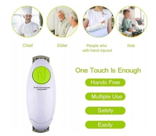 - Otwieracz do puszek bez użycia rąk: starannie zaprojektowaliśmy do użytku w ruchliwej kuchni i tych z bólem dłoni lub nadgarstków.INNOWACYJNY DESIGN! Podczas otwierania nie ma krawędzi, krawędź jest gładka, nie ma ryzyka zranienia.