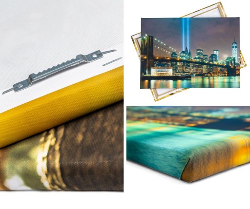 Naciągnięte płótno na boki ramy z zadrukowanymi krawędziami na płótnie tworzy ciekawy efekt 3D.