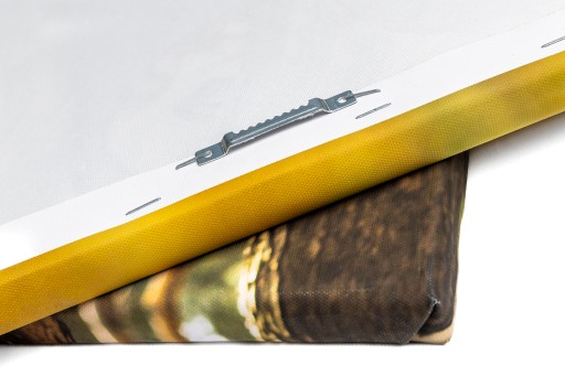 Naciągnięte płótno na boki ramy z zadrukowanymi krawędziami na płótnie tworzy ciekawy efekt 3D.