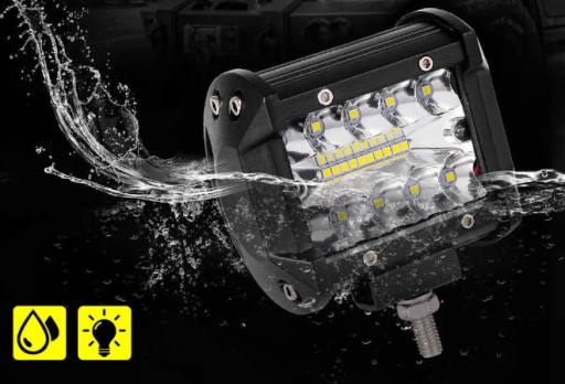 Jasny reflektor LED do oświetlenia dodatkowego. Środkowe rzędy diod są zamontowane we wspólnym płaskim odbłyśniku i tworzą szerokie wiązki światła roboczego. Pozostałe diody LED są zamontowane w oddzielnych odbłyśnikach i tworzą bardziej skupione wiązki światła dalekiego zasięgu. Reflektor działa w trybie pojedynczego światła, bez przełączania między światłami roboczymi i drogowymi.