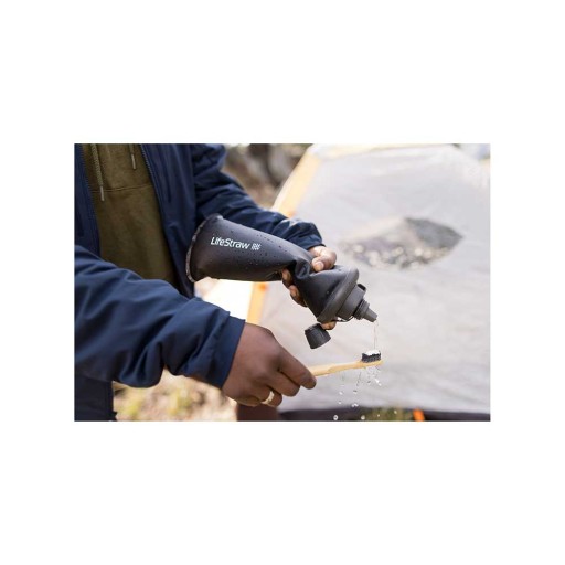 - Zestaw zawiera: filtr LifeStraw Peak, składaną butelkę o pojemności 1 L, strzykawkę do płukania wstecznego