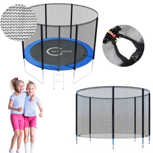 Siatka jest doskonałym zabezpieczeniem w trakcie zabawy. Posiada właściwości odporne na warunki atmosferyczne oraz promieniowanie UV. Produkt uniwersalny, pasuje do trampolin większości producentów o tej same średnicy i ilości słupków.