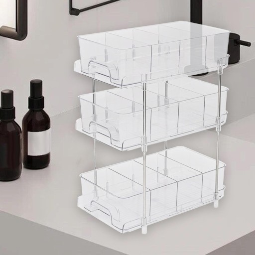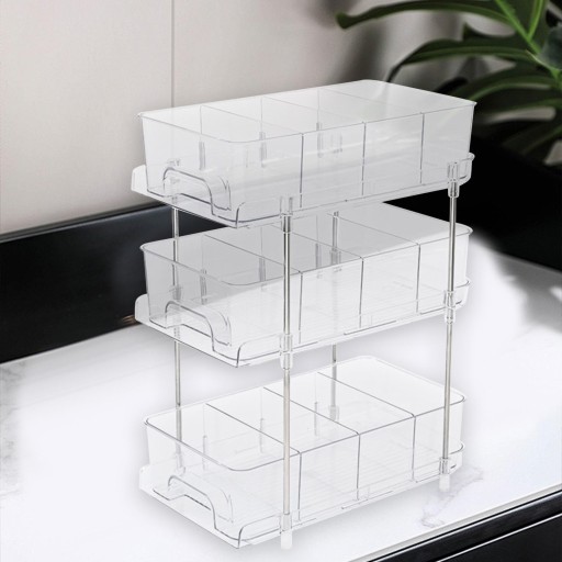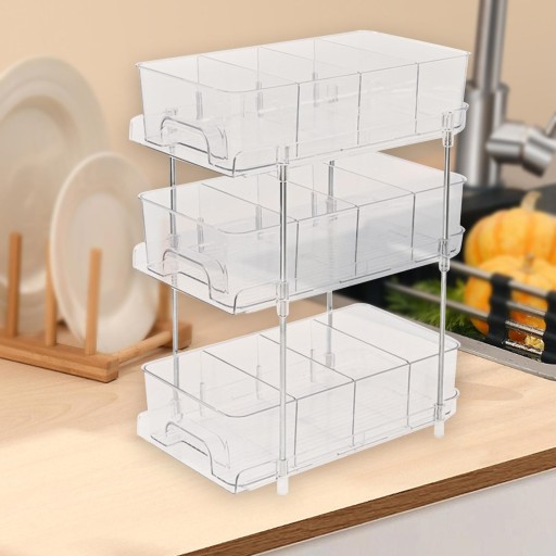 [Pod organizerami i schowkami pod zlewem]: Organizator szuflady kuchennej może zmaksymalizować przestrzeń w szafie pod zlewem, aby pomóc w uporządkowaniu przyborów kuchennych lub łazienkowych.