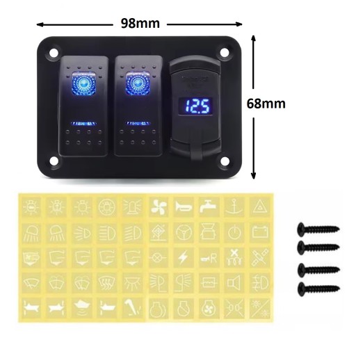 Podświetlany panel włączników z ładowarką USB i woltomierzem