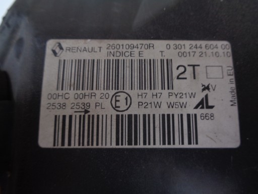 REFLEKTOR LAMPA PRZÓD PRAWA RENAULT MEGANE 3 III ANGLIK 260109470R
