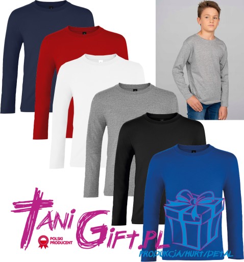 ✅Klasyczny T-shirt z długim rękawem, gładki